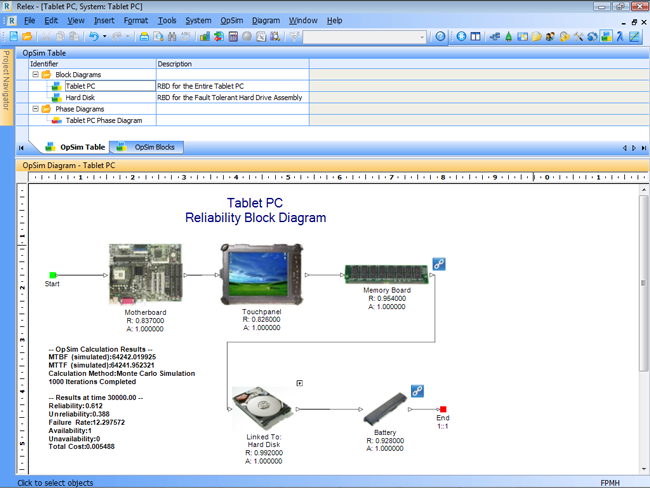 Ferramentas para modelar sistemas podem ajudar a calcular confiabilidade, disponibilidade e custos com complexas relações de interdependência. O Relex RBD é uma ferramenta que através de diagramas de blocos e diagramas de fase, consegue otimizar e simular sistemas complexos. Considera uma grande variedade de configurações de sistema, como redundâncias, divisão de carga e standby. Também considera opções de manutenção e determina valores ótimos para intervalos de manutenção e inspeção, recursos de reparo e sobressalentes para maximizar disponibilidade e reduzir custos.